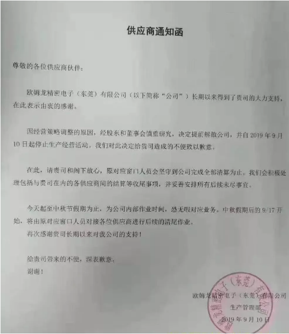 欧姆龙精密电子(东莞)有限公司关闭对供应商的通知函表示,在OPT及集团公司背光业务面临市场严峻环境的情况下,欧姆龙对该业务开展了结构改革。但是,鉴于该业务目前所面临的市场环境发生巨大的变化,欧姆龙认为在此种情况下要继续开展相关业务非常困难,因此决定于2019年财年底中止该项业务。另外,位于中国东莞的生产基地也随之关闭。据通知函称,因经营策略调整的原因,经股东和董事会慎重研究,决定提前解散欧姆龙精密电子(东莞)有限公司,并自2019年9月10日起停止生产经营活动。 通知宣称,请供应商放心,原对应窗口人员会坚守在公司完成全部清算为主,公司会积极处理各个供应商之间的结算等尾款事项。 自今天起至中秋假期为止,为公司内部作业时间,将无暇对应业务,中秋节后9月17日开始,将由原对应窗口人员对接各位供应商进行后续的清尾工作。 欧姆龙株式会社表示,今后欧姆龙将继续加强自动化、健康医疗、社会公共系统业务及为此提供支持的设备及模块业务领域在中国的发展,以满足不断增长的新的社会需求。 中止的背光业务概要:主要开展手机、智能手机等移动终端用中小液晶背光单元的设计、制造和销售。由欧姆龙旗下100%子公司欧姆龙精密电子株式会社及其集团承担。液晶背光电路板产品主要用于手机、汽车车载装置、PC电脑等产品的彩色中小型液晶。 对业绩的影响:该业务终止对本公司当期业绩的影响比较轻微。 之前欧姆龙苏州工厂解散时表示,受到手机行业冲击,OLED屏的销量暴增严重冲击了液晶的市场,而欧姆龙是背光组件的重要供应商,而OLED自发光,不需要背光板。这意味着其产品销量的大幅度下降。在中高端市场OLED越来越流行甚至销售额上涨超过20%,液晶却出现22%下滑,受此影响欧姆龙苏州工厂不得不做出解散、关门的决定。 欧姆龙的解散,反映出当下中国新一轮显示技术革命蓄势待发: 一方面,OLED具有主动发光、高对比度、超轻薄、耐低温、响应速度快、功耗低、视角广、抗震能力强等优势,业内普遍认为,OLED将成为未来彩电消费市场的主流显示技术; 另一方面,从技术发展方向而言,就像液晶屏代替厚重CRT显示技术一样,OLED的兴起一样将带来冲击,只不过这一次也许会温和一些,业内预计OLED屏大规模取代液晶显示屏将在2022年之后。 |